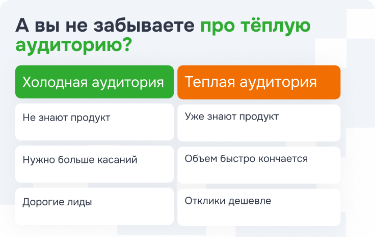 - работаете ли вы отдельно с теплой аудиторией;