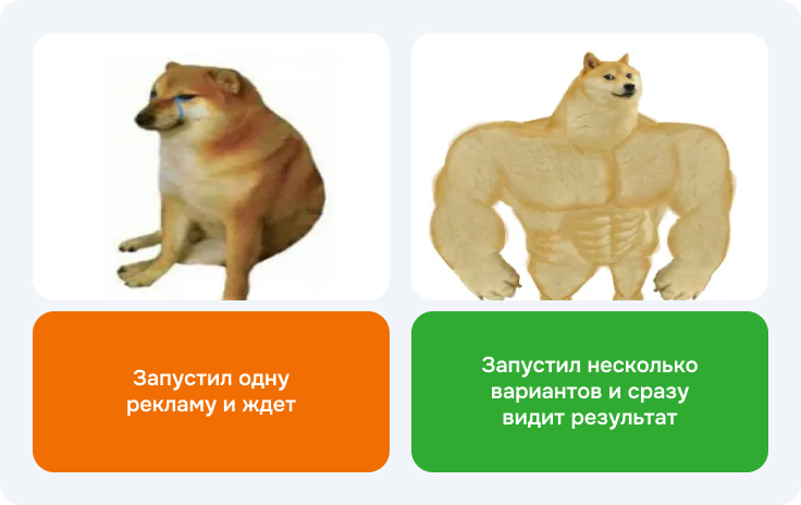 Смысл теста – не запускать одну рекламу и ждать, а сразу проверять несколько вариантов, например, разные креативы на одну аудиторию или один оффер на разные сегменты. Уже в первые дни видно, где есть отклик, а где его нет.