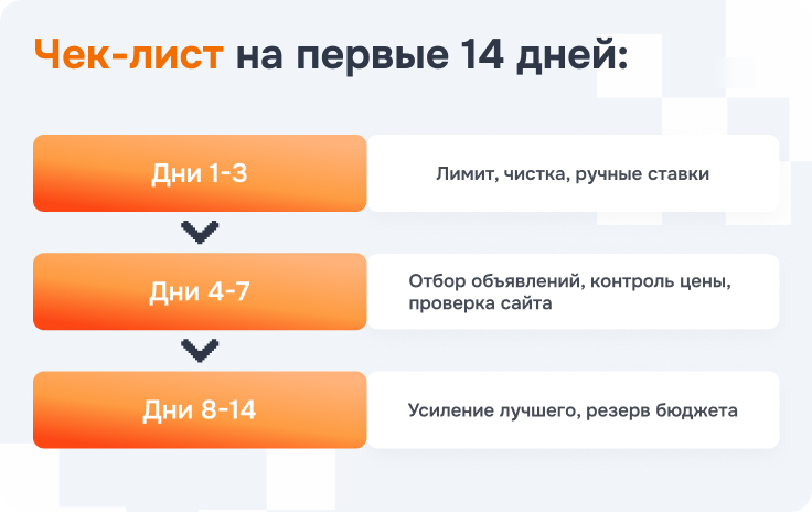 Вместо итога — чек-лист на первые 14 дней (сохраните себе)